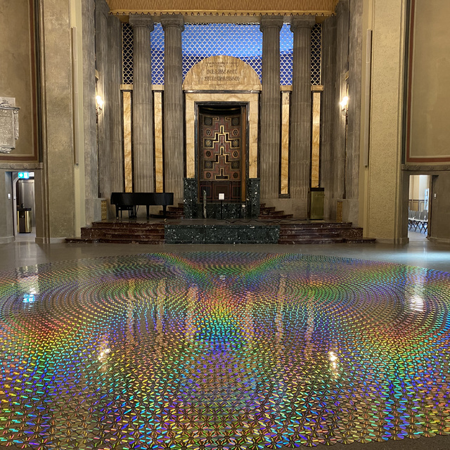 Die wiedereröffnete Görlitzer Synagoge bietet in ihrem Zentralraum und vor allem mit dessen beindruckender Stuck-Kuppelgestaltung beste Voraussetzungen für eine temporäre großformatige Boden-Installation mit tausenden gebrauchten Datenträgern (Disks) als einer Form zeitgenössischer Kunst im Kontrast und Zusammenspiel mit der historischen Innenraum-Architektur des Hauses.